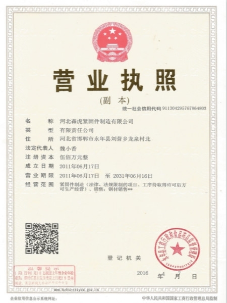 歡迎新老客戶來電垂詢,來廠參觀考察,洽談合作河北森虎緊固件制造有限公司